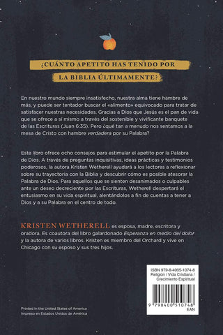 Ayuda para el alma hambrienta ofrece consejos para estimular el apetito por la Palabra de Dios. A través de preguntas inquisitivas, ideas prácticas y testimonios poderosos, la autora Kristen Wetherell ayudará a los lectores a reflexionar sobre su trayectoria con la Biblia y descubrir cómo es posible atesorar la Palabra de Dios.
