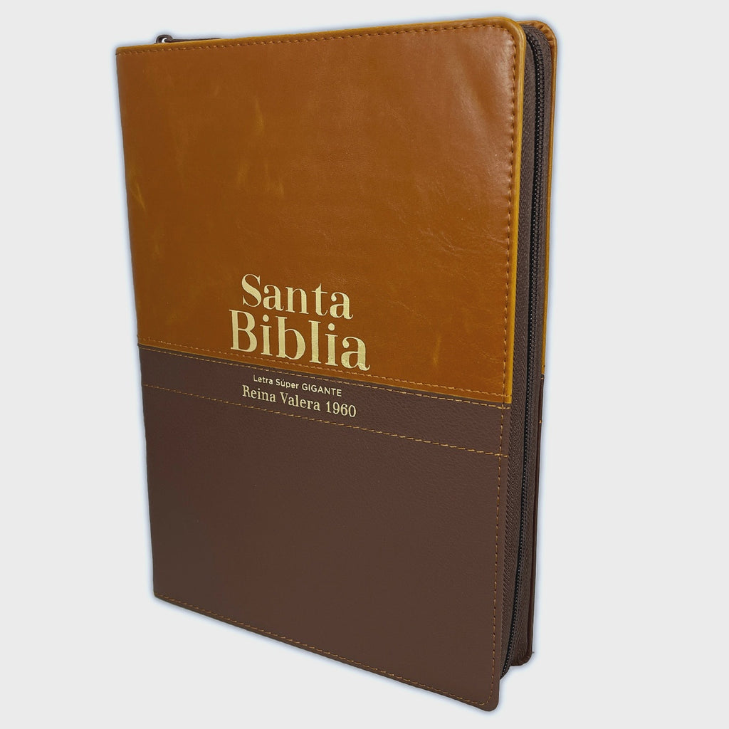 Biblia Letra Súper Gigante con Cierre RV1960, imit. piel duotono café