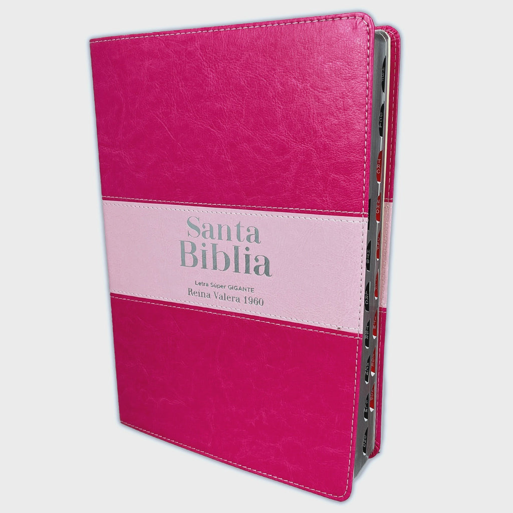 Biblia Letra Súper Gigante RV1960, imit. piel duotono rosado con índice