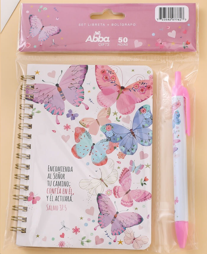 Pack libreta anillas con bolígrafo. Encomienda al Señor tu camino